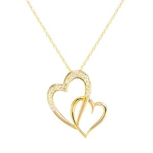 10k Yellow Gold Diamond Double Heart Pendant (1/10 cttw, I-J Color, I1-I2 Clarity), 18"