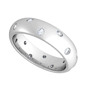 Bezel set Diamond Semi Eternity Wedding Band Ring. Round Brilliant Diamond count, Fourteen. carat total weight, 0.42.