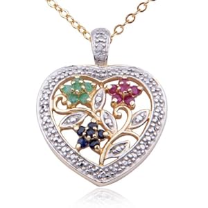 18k Yellow Gold Plated Sterling Silver Genuine Multi-Gemstone Flower Heart Pendant, 18"