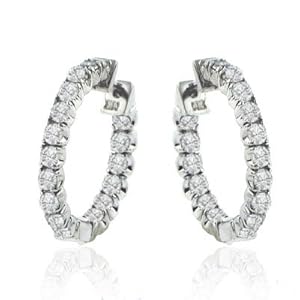 These cute hoop/huggie earrings make the perfect addition to any girls accessory jewelry collection and they're ready to surprise her with our wholesale direct low prices. Set in the popular inside and outside pattern we put 1.70 carat total weight in carefully matched F white color and immaculately clean to the eye VS-2 clarity diamonds all with magnificent fire and sparkle into these fashionable and fun to wear 14 karat white gold earrings.