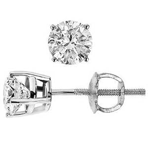 1.00 carat ct Round Diamond Stud Earrings in 14k White or Yellow Gold; (H-I Color, SI2 Clarity); Screw Back