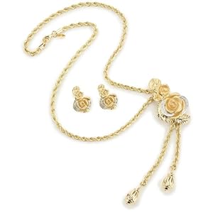 Two-Tone Rose Twisted Rope Chain Necklace and Clip Back Earring Set
