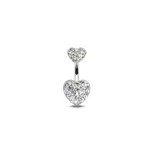 Body Accentz™ Belly Button Ring Navel Double Gem Heart Body Jewelry 14 Gauge HO301