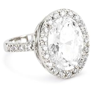 Add a dash of glitz and glam with the CZ by Kenneth Jay Lane "Trend CZ" Cubic Zirconia Oval Pave Fashion Ring. This fabulous ring features a large oval-shaped cubic zirconia stones that forms the base shape of this cocktail ring. The stone is outlined by a frosting of smaller round cubic zirconia stones that emphasize the sparkle of the entire ring. We love the criss-cross detailing along the ring's setting. It adds extra elegance to the ring. The large size gives the statement ring a fabulous and flirty look.