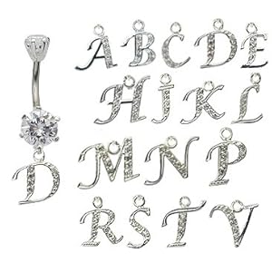 dangle belly button rings initial D ? GlitZ JewelZ - laser cut CZ crystals - surgical steel 316L - bar length 3/8 inch (10mm) - many alphabets available - gently packed in a lovely velvet pouch
