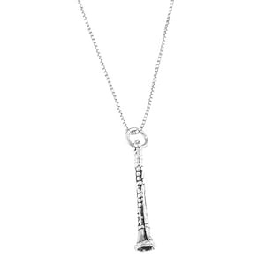 Sterling Silver Woodwind Clarinet Necklace- 3d (STERLING SILVER)
