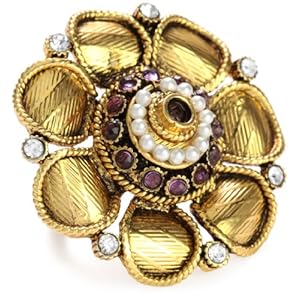 The amber and pearls are handpicked by Jaipur artisans and set in the flower ring. The precise detail of the ring shows off the artistry of Jaipur